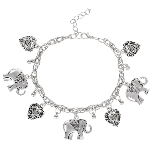 Vintage Elephant Heart Pendant Anklet