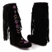 Vintage Embroidered Suede Ankle Boots with Tassels