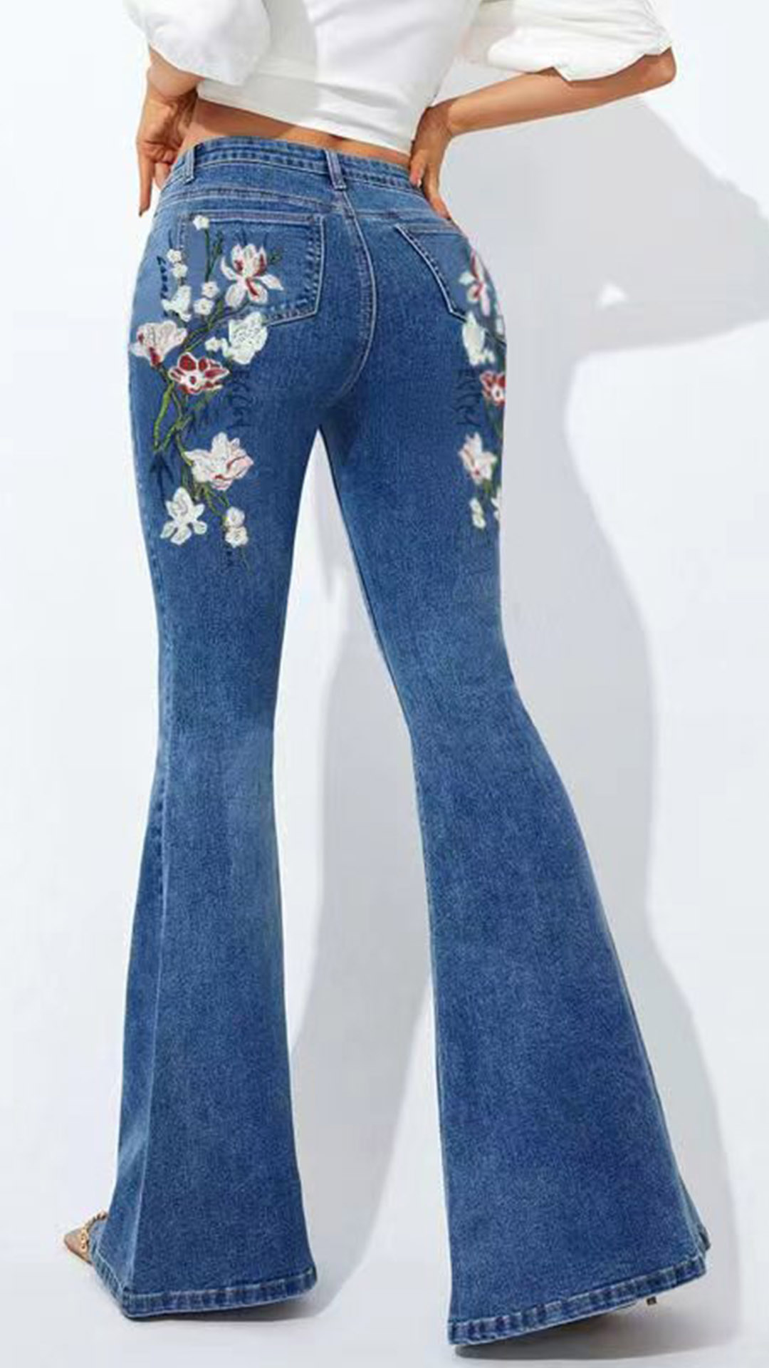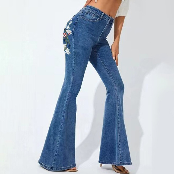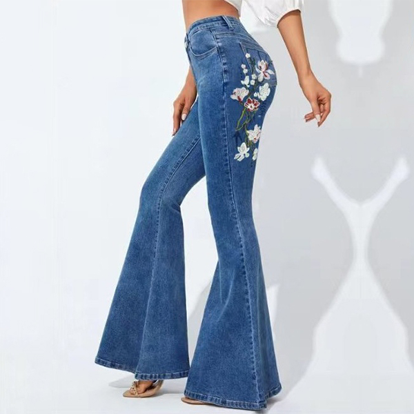Look at this jeans! The wide-leg silhouette offers a relaxed and chic look, while the floral embroidery adds a feminine and bohemian touch to the jeans, creating a standout and eye-catching design.Crafted from high-quality denim fabric, these jeans are designed to be both comfortable and fashionable.