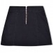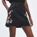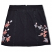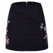 This skirt features a black denim fabric adorned with delicate floral embroidery, a back zipper closure. Pair it with a tucked-in blouse and heels for a sophisticated and feminine look.