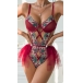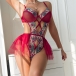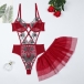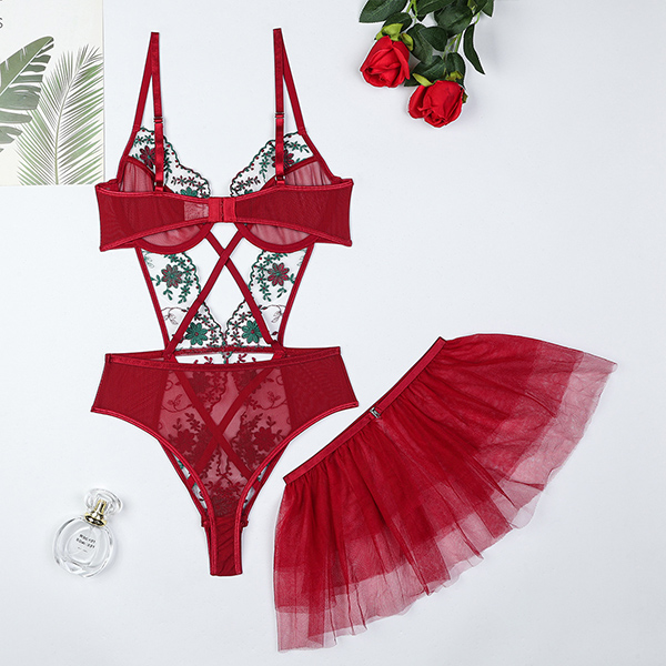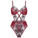 Vintage Floral Embroidery Cross-criss Gauze Spliced Lingerie Bodysuit