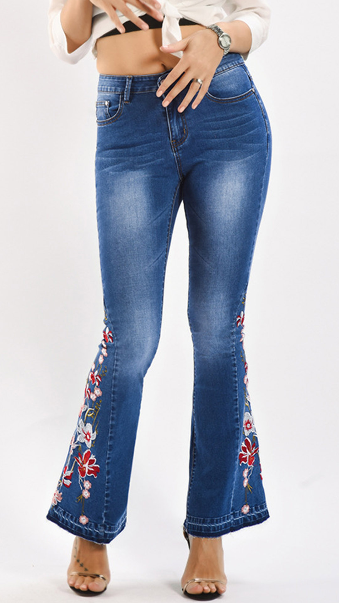 These stunning, vintage-inspired jeans effortlessly blend classic denim elements with exquisite, romantic embroidery, creating a timeless, fashion-forward piece that pays homage to the iconic styles of the past while remaining thoroughly modern. I like the flare hemline with frayed details, and you?
