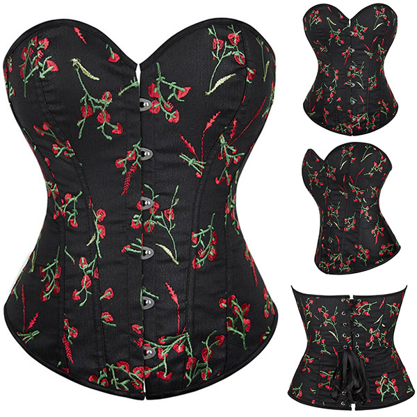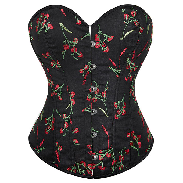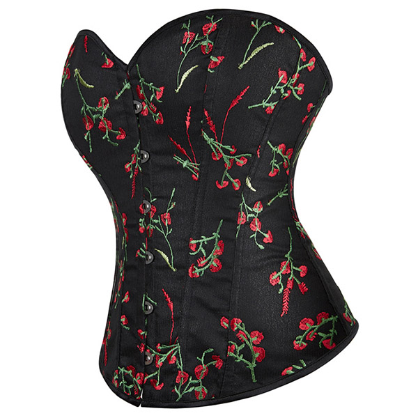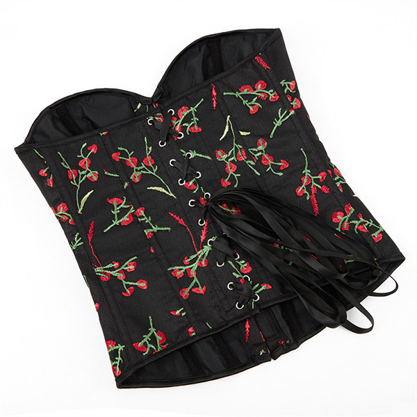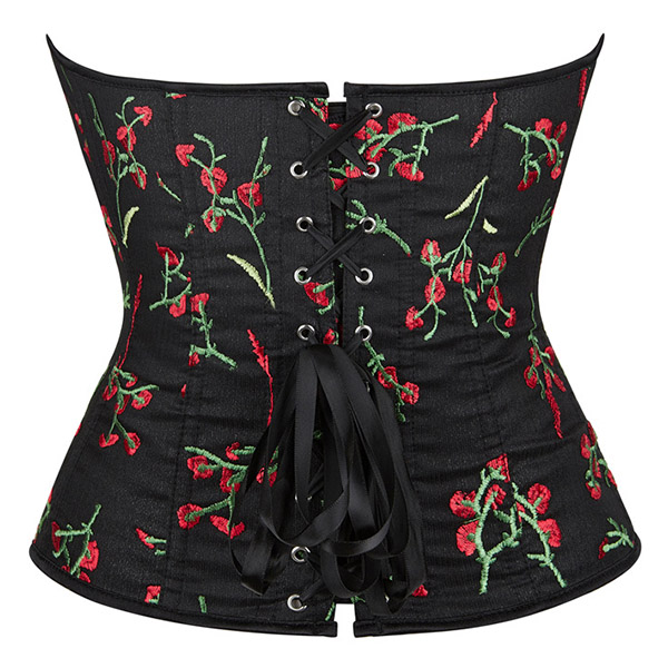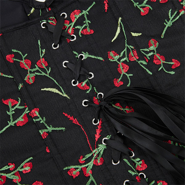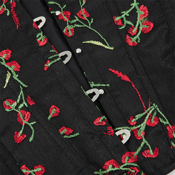 Vintage Floral Embroidery Front Buckle Back Lace-up Strapless Cinched Waist Corset