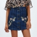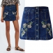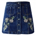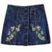 Vintage Floral Embroidery Front Button Patch Pockets Denim Skirt