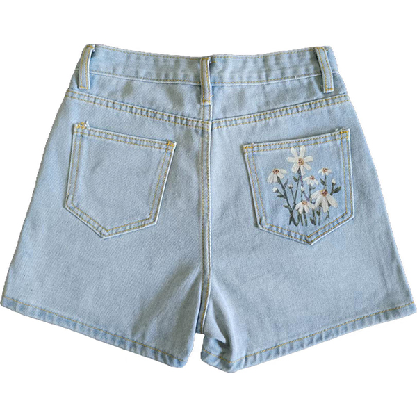 Step into summer with this Denim Shorts. These stylish shorts feature intricate floral embroidery that adds a charming touch to your casual look. The high-rise fit accentuates your waist, providing comfort and a flattering silhouette. Pair them with a simple tee or a breezy blouse for a chic, laid-back outfit!