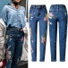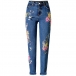 Vintage Floral Embroidery Old-washed Skinny Denim Jeans