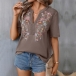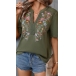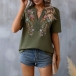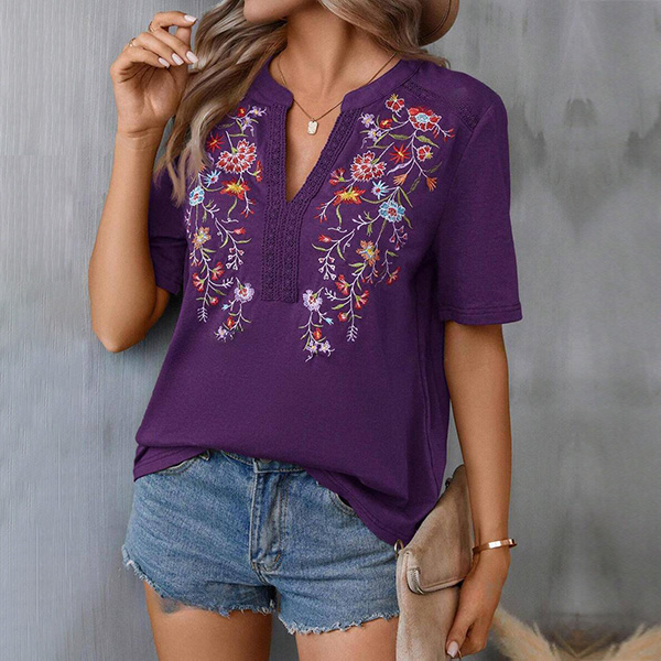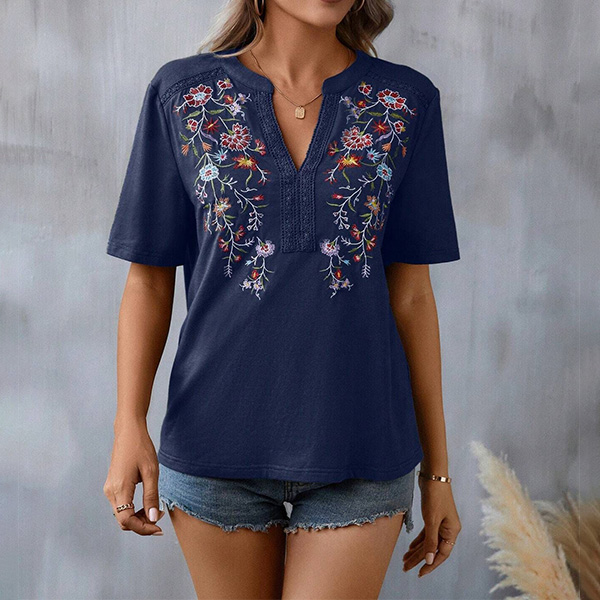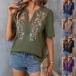 Vintage Floral Embroidery V-neck Short Sleeve Shirt