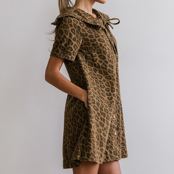 This sophisticated dress features vintage fashion styling with luxurious floral jacquard/Leopard Pattern construction and structured lapel collar design for timeless elegant sophistication. I like the lapel collar design, and you?