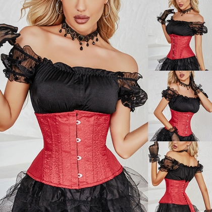 Vintage Floral Jacquard Red Corset