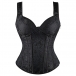 Vintage Floral Jacquard Sweetheart Neckline Corset Shirt