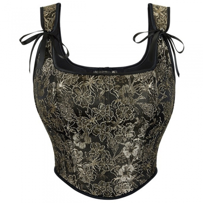 Vintage Floral Lace-up Corset Shirt
