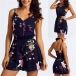 Vintage Floral Printed Elastic Waistline Sleeveless Cami Romper