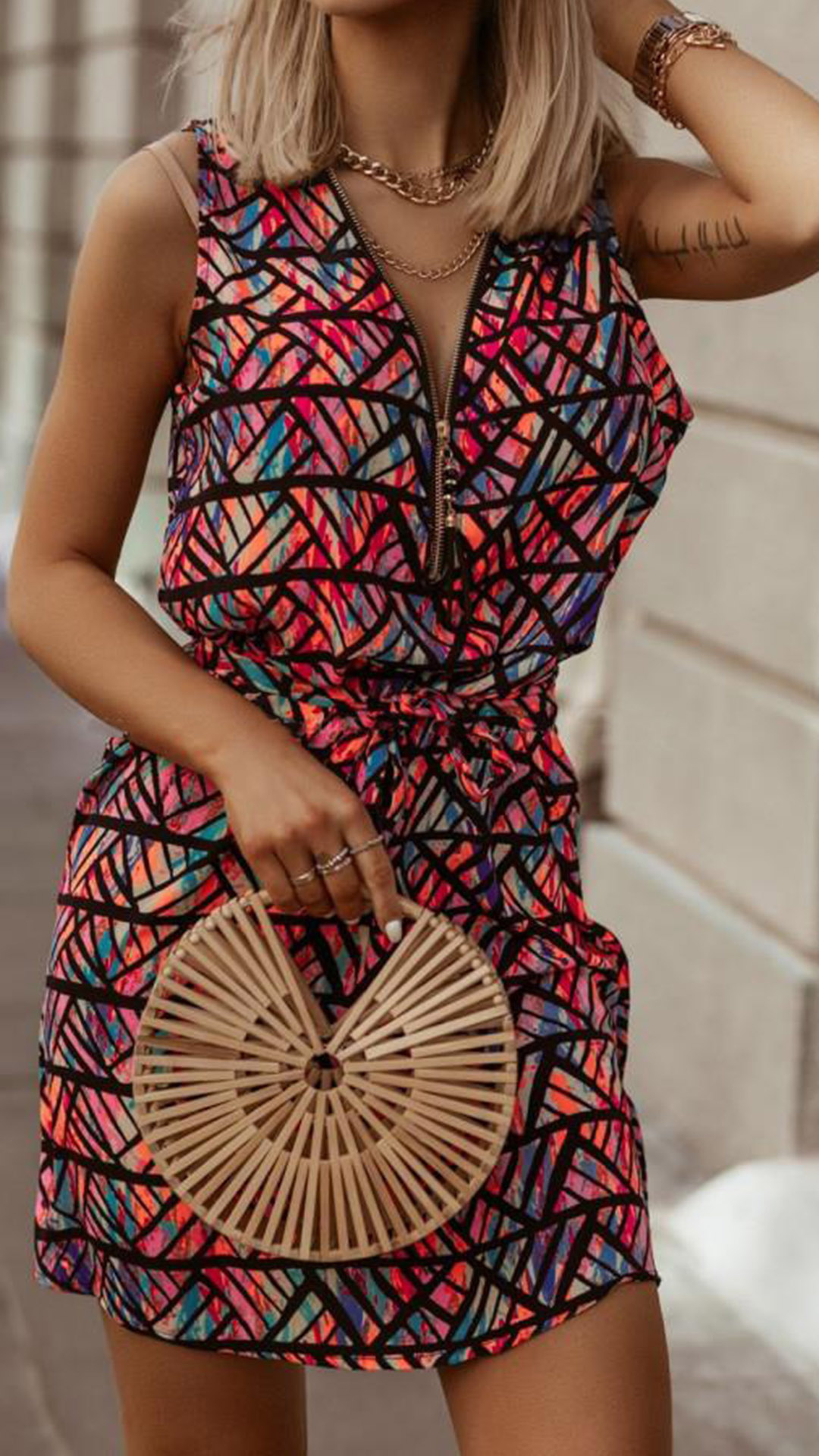 This dress features a beautiful floral print that adds a touch of elegance and femininity to the overall look. The half-zipper and V-neckline create a classic and timeless design that makes it versatile and easy to style. If you're looking for a comfortable and stylish outfit for a day at the park, this dress is sure to impress.
