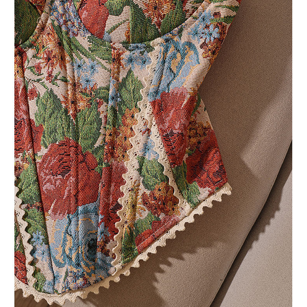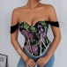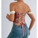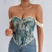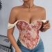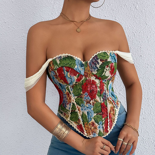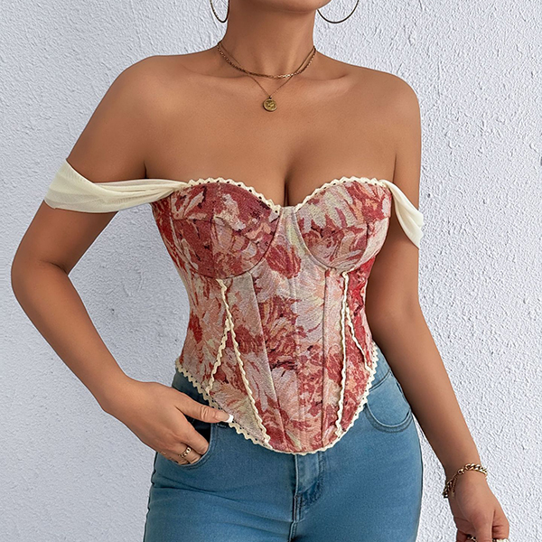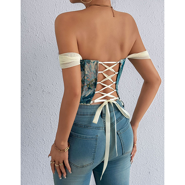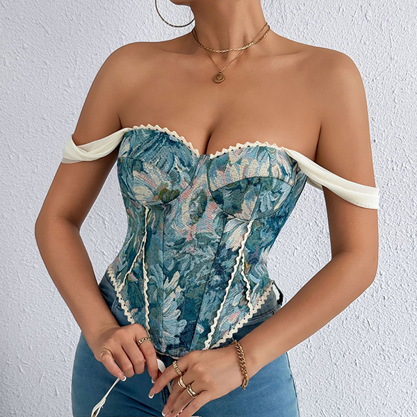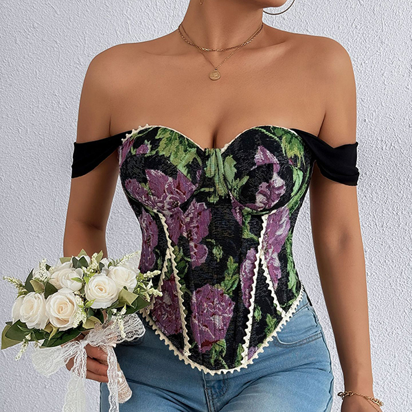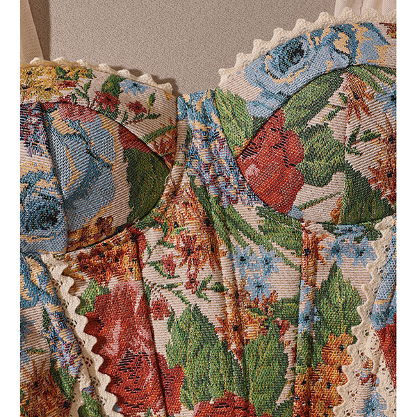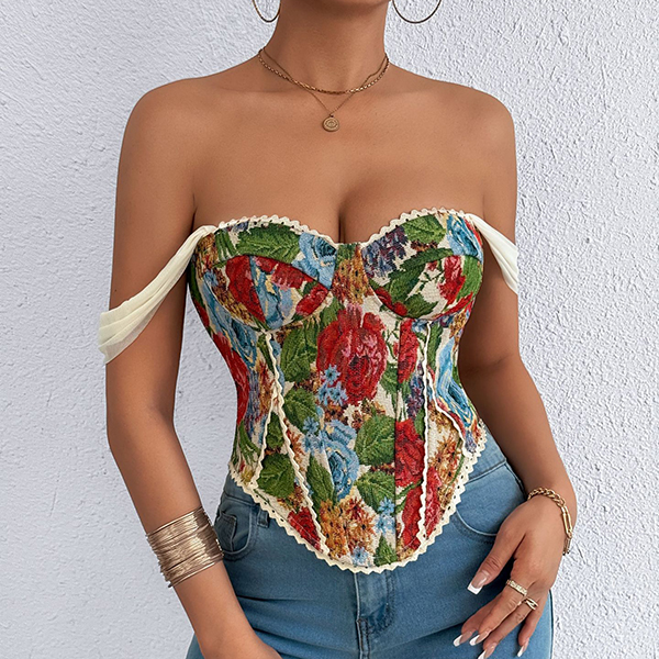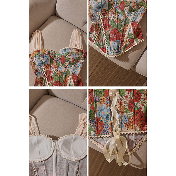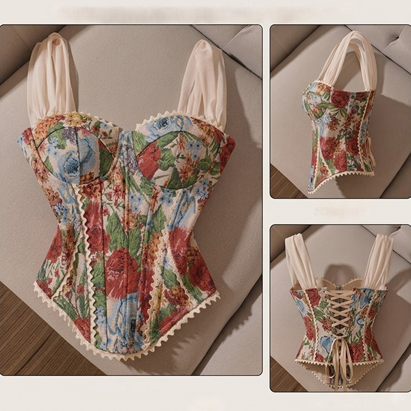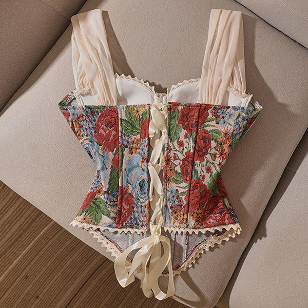 Vintage Floral Printed Lace Spliced Sweetheart Neckline Corset Top