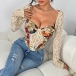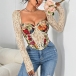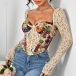 Vintage Floral Printed Lace Spliced Sweetheart Neckline Long Sleeve Backless Corset Shirt