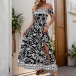Vintage Floral Printed Off-the-shoulder Side Slit Maxi Dress