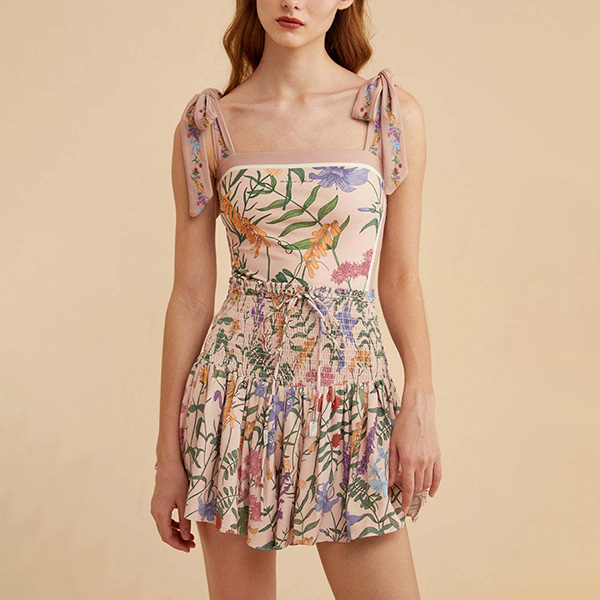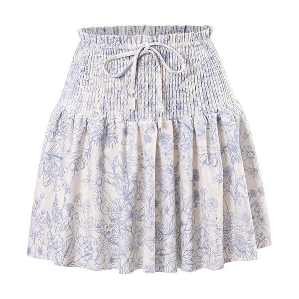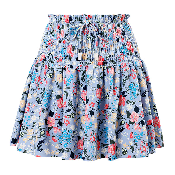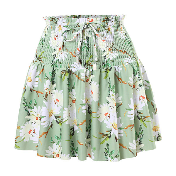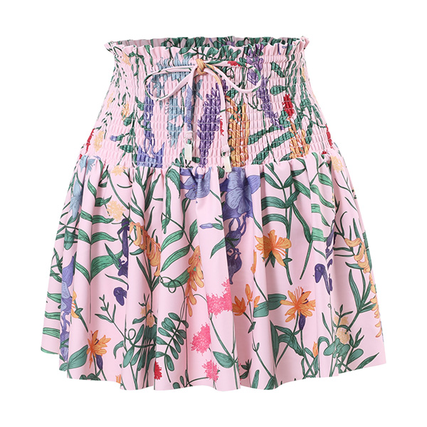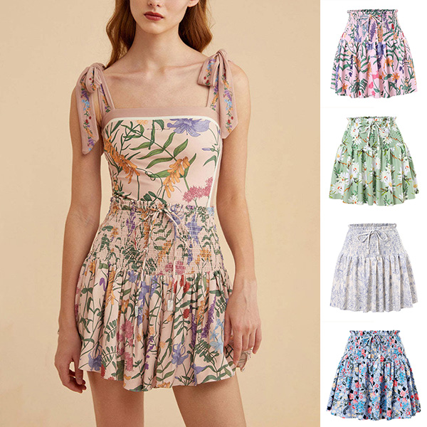 Vintage Floral Printed Reversible-wear Smocked Pleated Swimming Cover-up Skirt