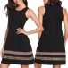 Vintage Floral Printed Round Neck Sleeveless Black Dress
