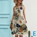 Vintage Floral Printed Round Neck Sleeveless Tassel Dress