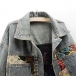 Vintage Floral Printed Stand Collar Long Sleeve Crop Denim Jacket