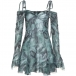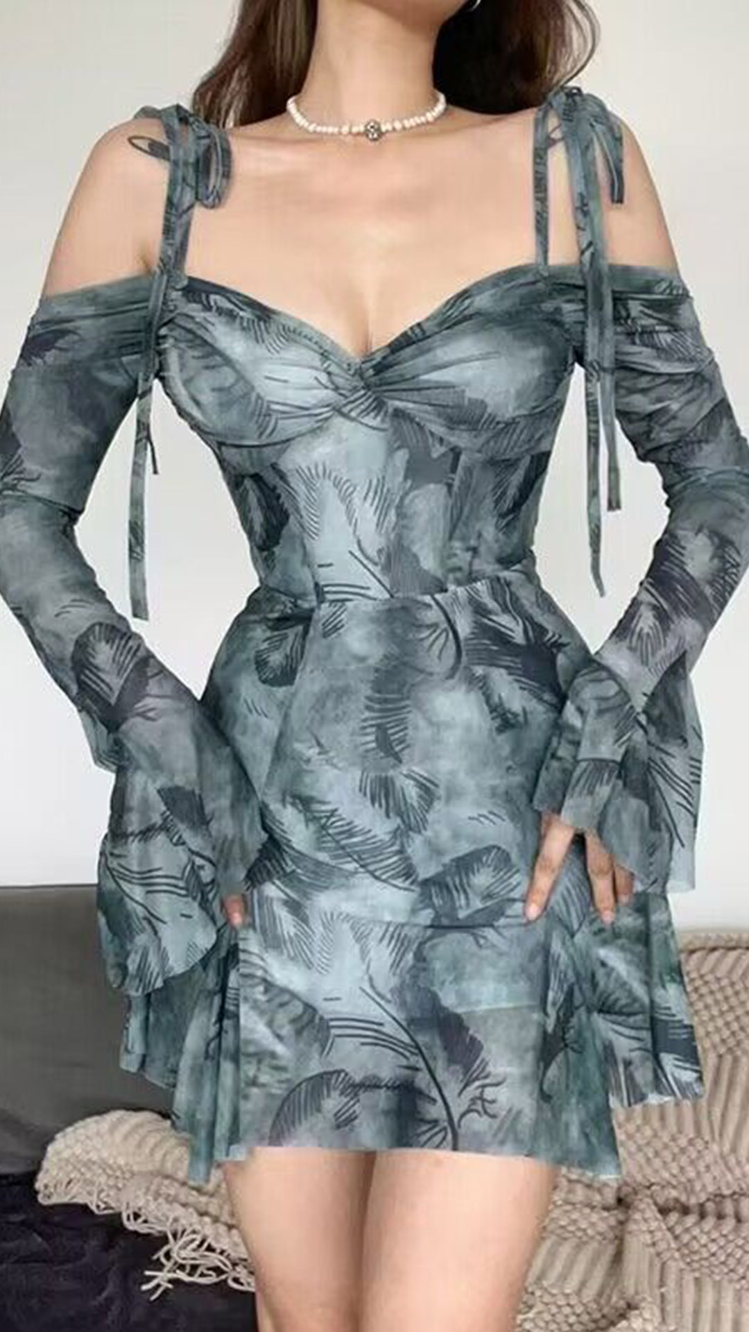 Look at this dress! The vintage floral print adds a touch of nostalgia and femininity, creating a visually striking and timeless look. The sweetheart neckline enhances your neckline and adds a flattering and romantic touch. The open-shoulder design adds a unique and alluring element. And the long trumpet sleeves add a dramatic and elegant flair to the dress. The self-tie shoulder strap for easy customization of the fit, Wanna have one?