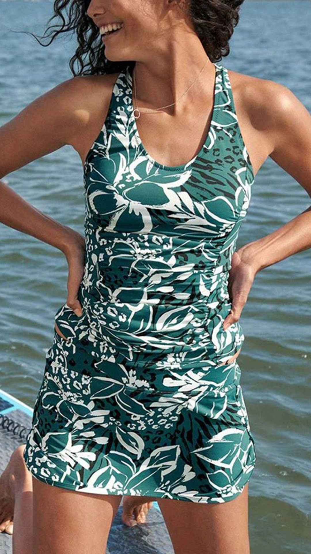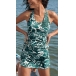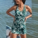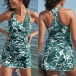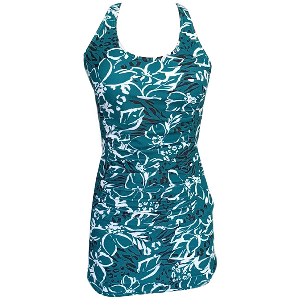 Vintage Floral Printed Swimming Set Consist of Racerback Swimming Shirt and Swimming Skirt