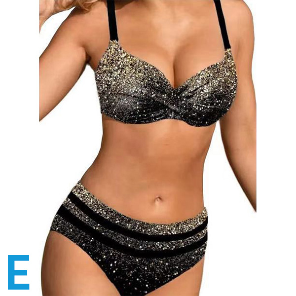 Vintage Floral Printed Two-piece Bikini Set Consist of Push-up Swimming Top and High-rise Swimming Bottom