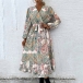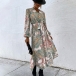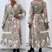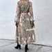 Vintage Floral Printed V-neck Long Sleeve Self-tie Midi-dress