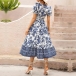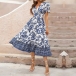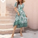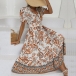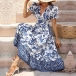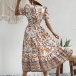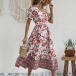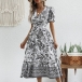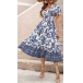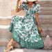 Vintage Floral Printed V-neck Puff Sleeve Midi Dress