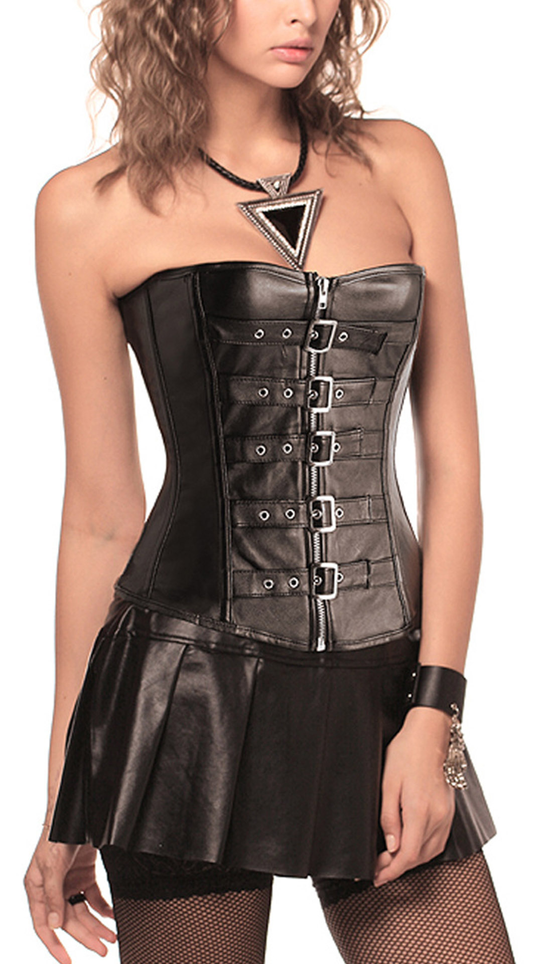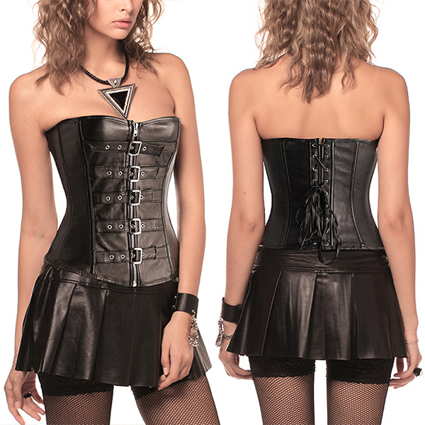 Vintage Front Buckle Back Lace-up Strapless Artificial Leather PU Corset