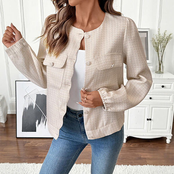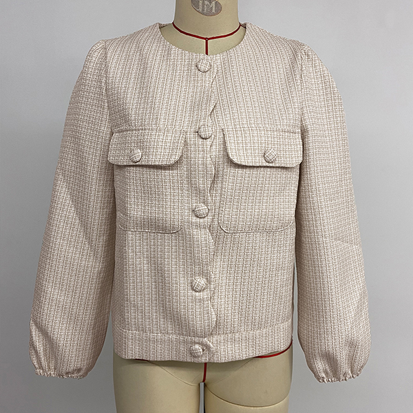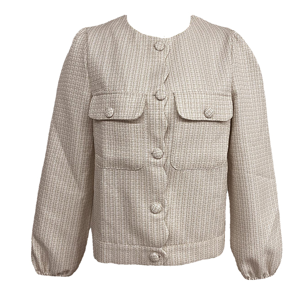 The Vintage Tweed Jacket is a classic and timeless piece that exudes sophistication and elegance. The tweed fabric adds a textured and luxurious feel to the jacket, creating a polished and refined look. The front button closure adds a tailored and structured element to the jacket, offering a sleek and sophisticated silhouette. Pair it with tailored trousers or a pencil skirt for a professional and sophisticated ensemble.