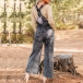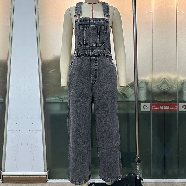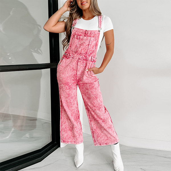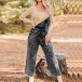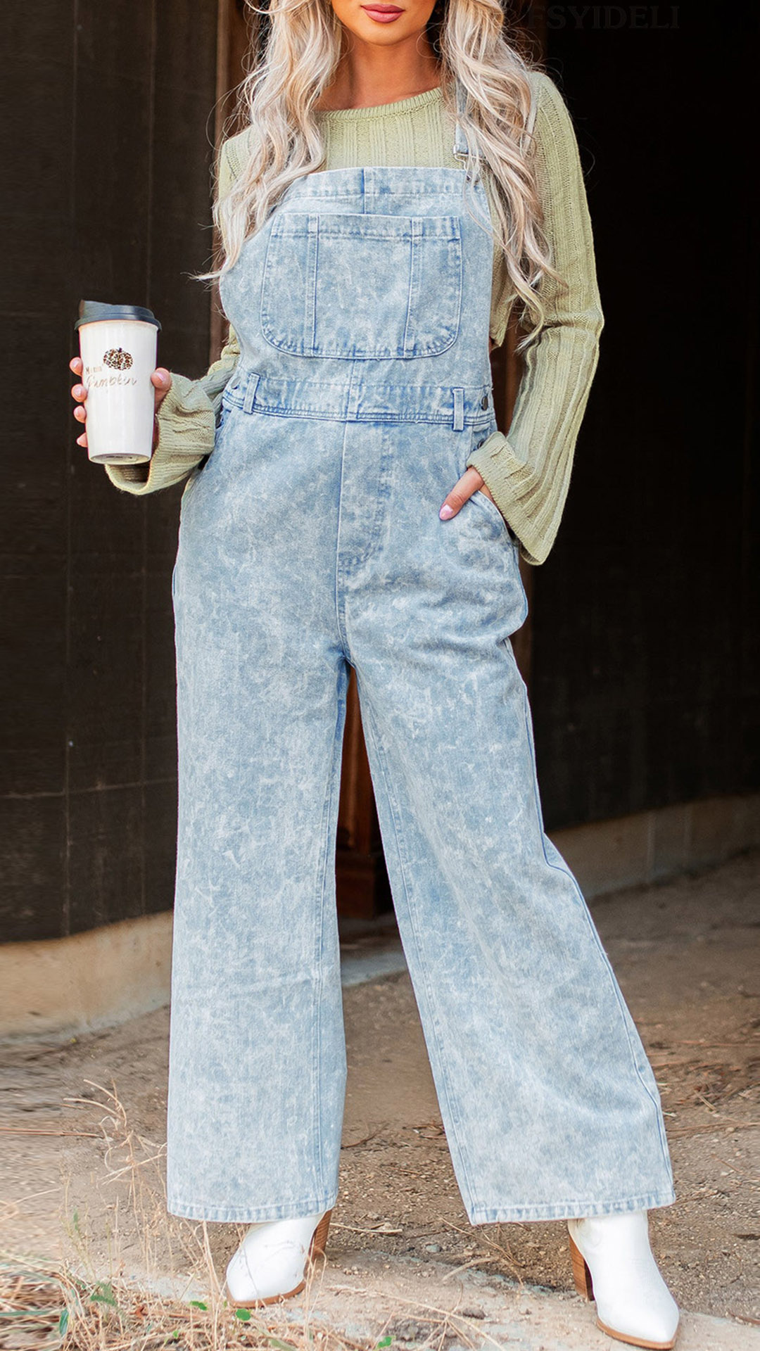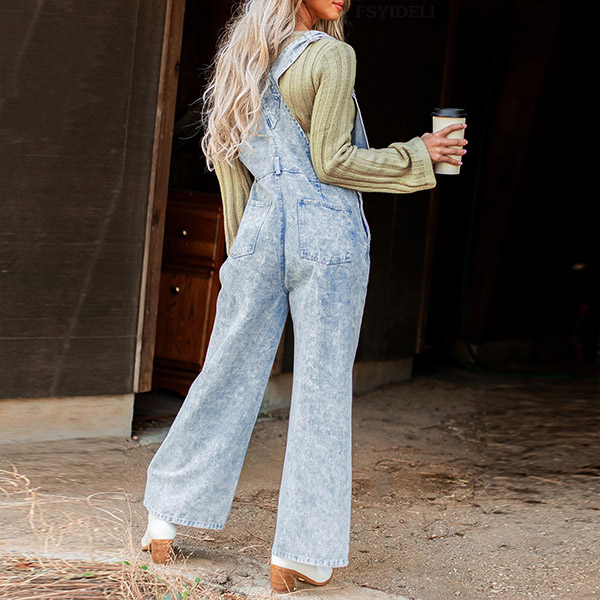 Vintage Front Patch Pockets Old-washed Straight-cut Denim Suspender Jumpsuit