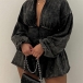 Achieve a retro-inspired look with this denim romper. It features long sleeves, a smocked cinch waist, and an old-washed finish. The half-zipper V-neck adds a touch of nostalgia and casual charm, while the smocked cinch waist detail creates a flattering silhouette by accentuating your waistline. Wanna have one?