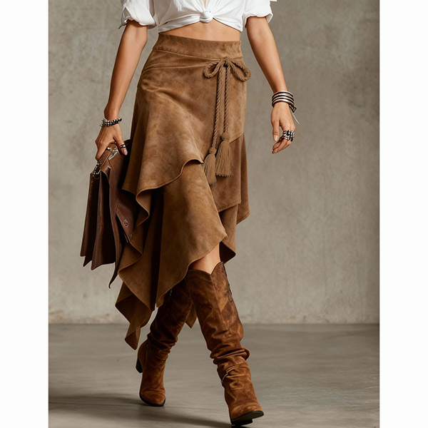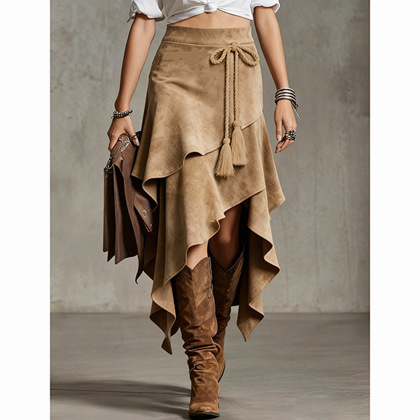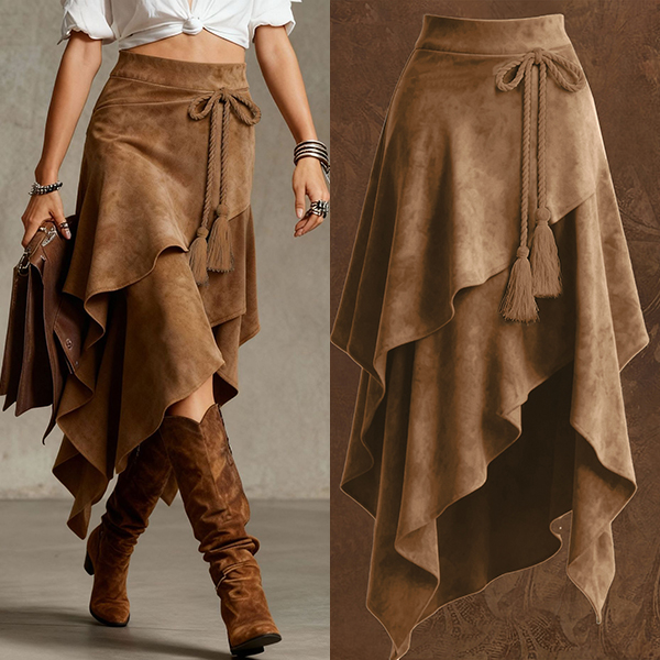 This charming skirt features nostalgic high-rise styling with romantic bowknot detailing and playful ruffle irregular hemline for vintage-inspired feminine sophistication. Pair with vintage blouses and retro accessories for authentic period appeal.