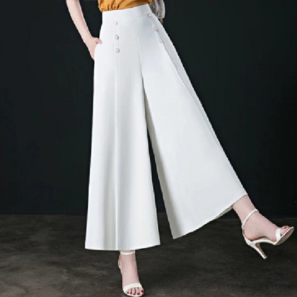 Look at this pants! The high-rise waist adds a classic and timeless element, while the wide-leg silhouette creates a stylish and sophisticated look. Featuring button detailing on the front, these pants add a unique and eye-catching element. Wanna have a try?