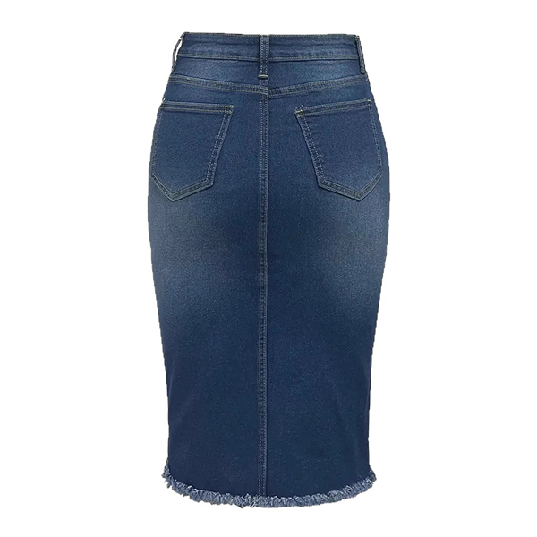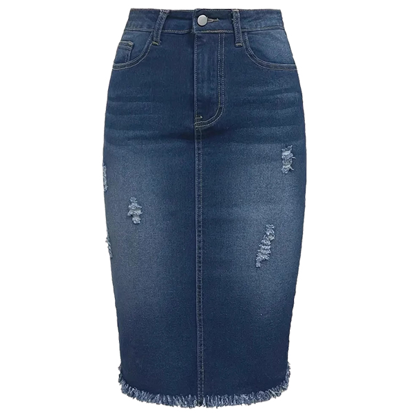 Vintage High-rise Distressed Frayed Hemline Slim-fit Denim Skirt