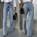 Step back in time with this Denim Jeans. These classic jeans feature a high-rise waist and a straight-cut leg for a timeless and flattering silhouette. The old-washed denim adds a vintage touch, giving these jeans a lived-in and well-loved look. Perfect for everyday wear~