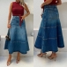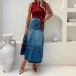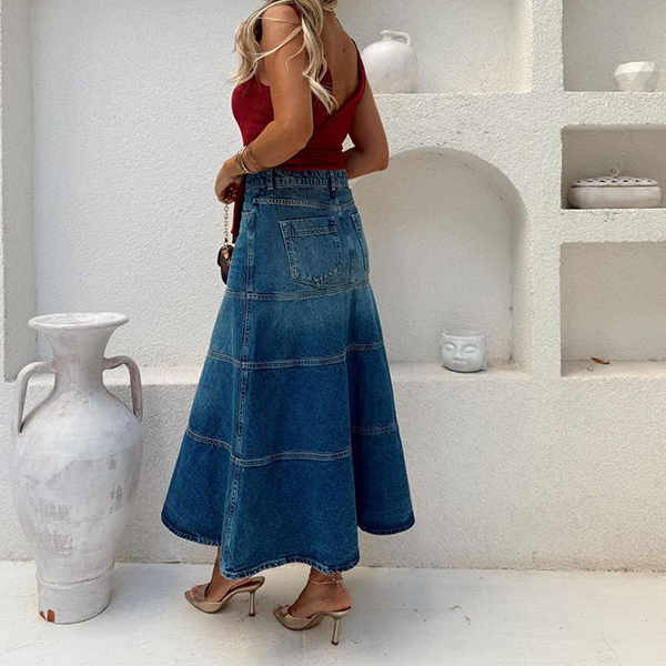 This denim skirt features vintage fashion styling with flattering high-rise construction and romantic tiered design for timeless feminine sophistication. Pair with crop shirt for fashion daily look.