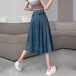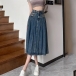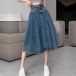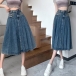 Vintage High Waist Denim Skirt: Pleated with Zipper Closure