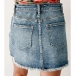 Vintage High Waisted Frayed Raw Hem Washed Denim Mini Skirt with Pockets