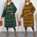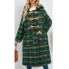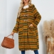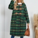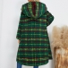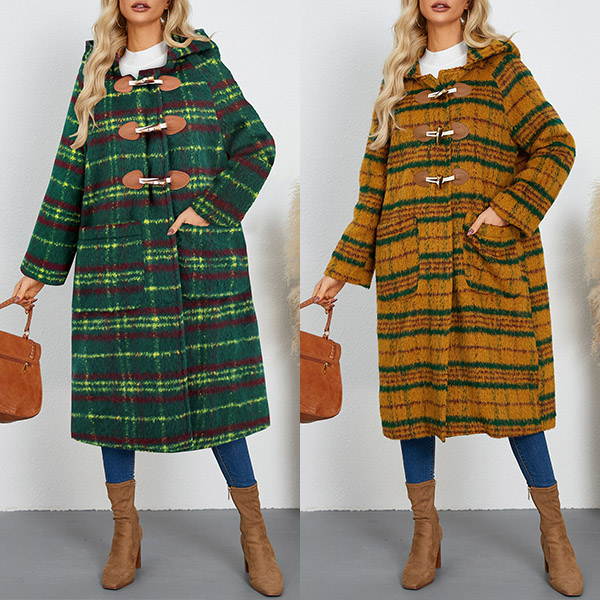 Vintage Horn Button Plaid Hooded Long Sleeve Duffle Coat