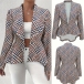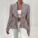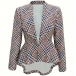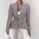 Blazer rétro à carreaux pied-de-poule avec revers, manches longues et ourlet asymétrique
