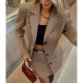 Look at these two-piece set! The iconic houndstooth pattern brings instant vintage appeal and refined texture that speaks to discerning taste and appreciation for enduring style. The blazer features sharp notch lapels that create clean, professional lines while maintaining that coveted tailored silhouette that flatters and commands attention. Paired with the coordinating mini skirt, this set strikes the perfect balance between boardroom sophistication and modern femininity.