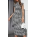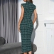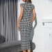 Vintage Houndstooth Printed Mock Neck Sleeveless Bodycon Midi Dress