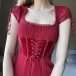 This is a charming and feminine shirt that combines vintage lace splicing along the square neckline, self-tie cap sleeves, and a lace-up detail for a cinch effect for a stylish and vintage-inspired look. Wanna have one?