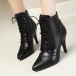 Vintage Lace-Up Heeled Ankle Boots with Floral Cutouts