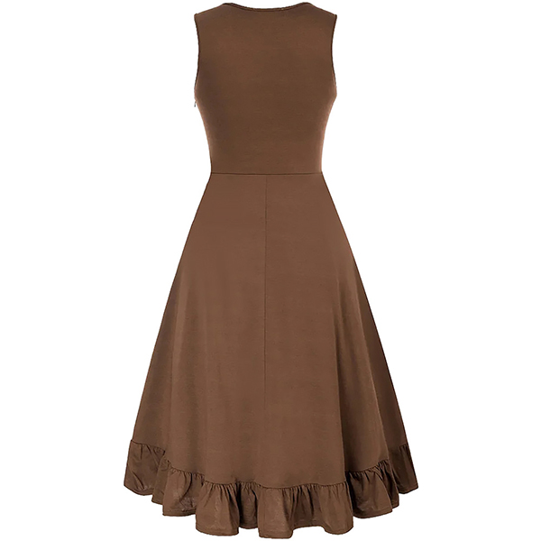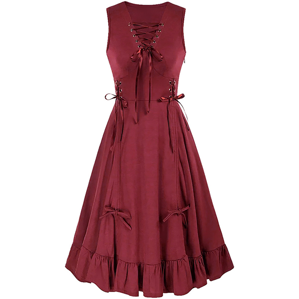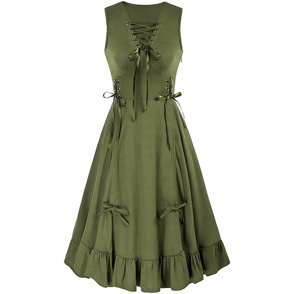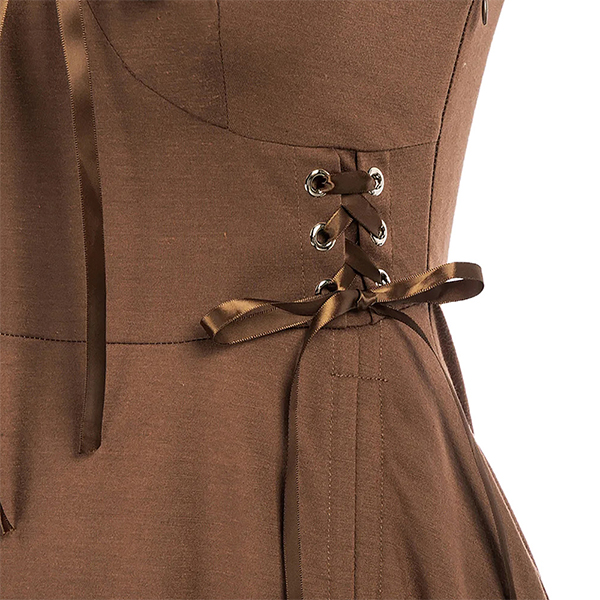 Vintage Lace-up V-neck Sleeveless Side Drawstring High-low Hemline Maxi Dress