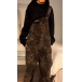 Vintage Leopard Printed Front Patch Pockets Loose Suspender Jumpsuit