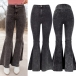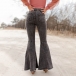 Vintage Mid-rise Old-washed Flare Gray Denim Jeans