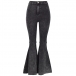 A pair of flare jeans featuring whiskering, intentional fading, and back patch pockets. It will give you a timeless look.